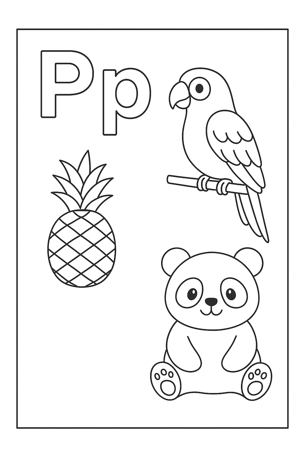 P – Parrot, Pineapple, Panda