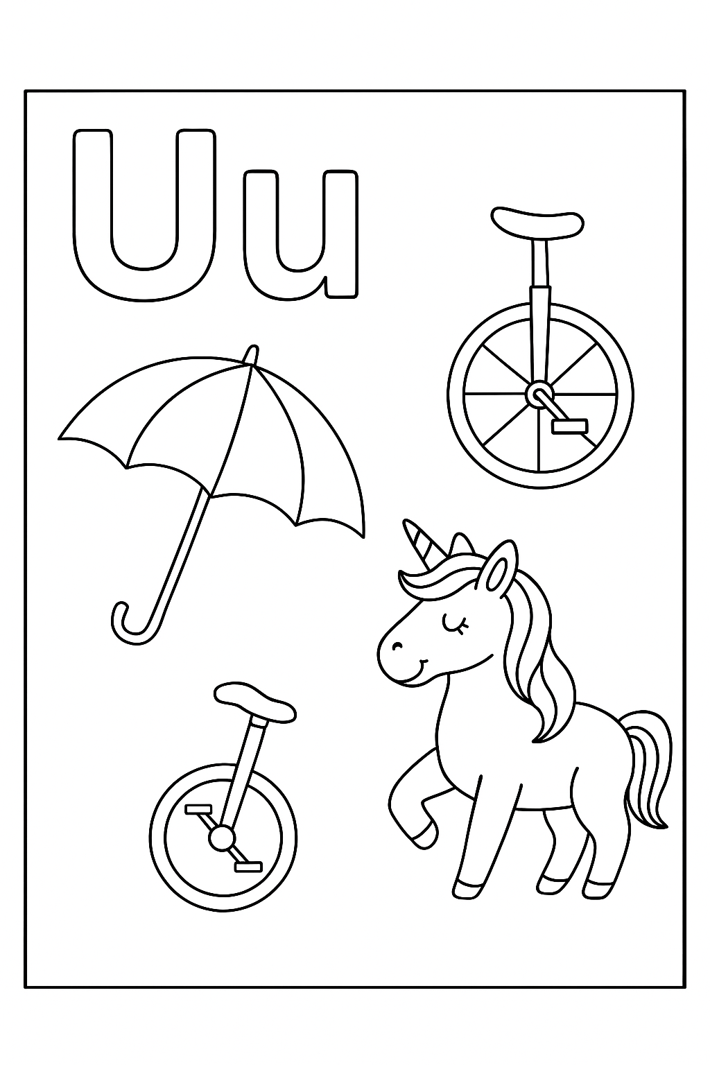 U – Umbrella, Unicorn, Unicycle