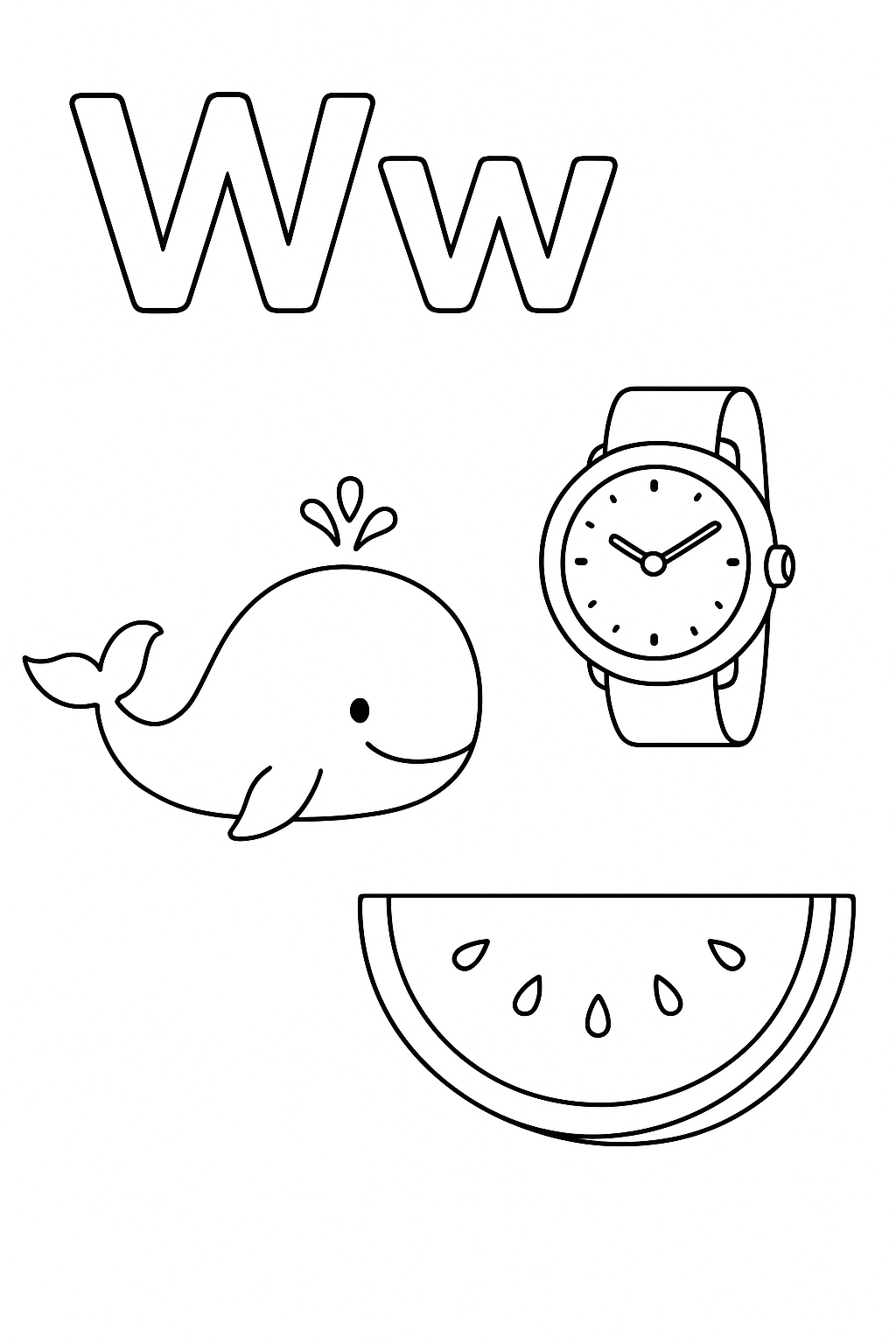 W – Whale, Watermelon, Watch