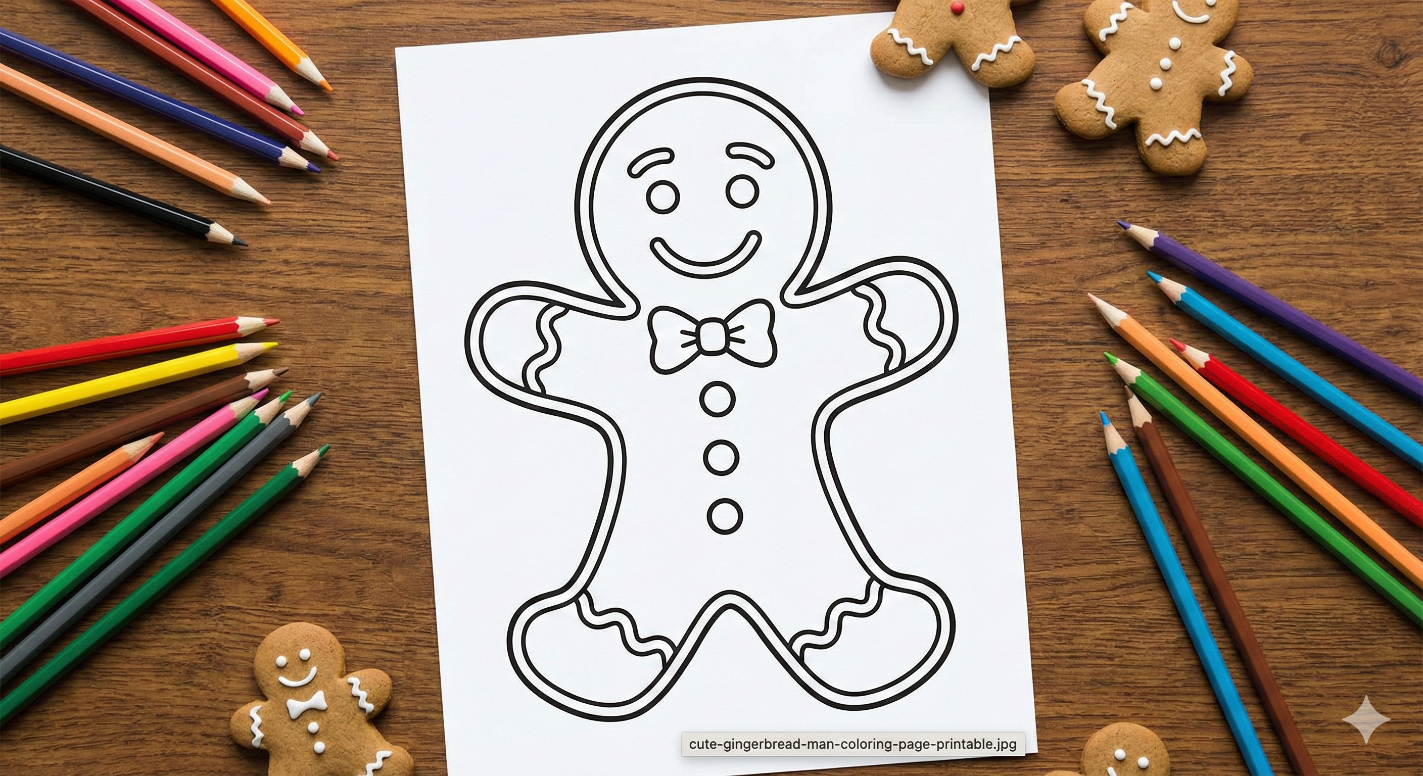 - DIY Christmas Garland: Print smaller versions of the classic gingerbread man, color them in, cut them out, and string them together with twine to hang on the mantelpiece or the Christmas tree.